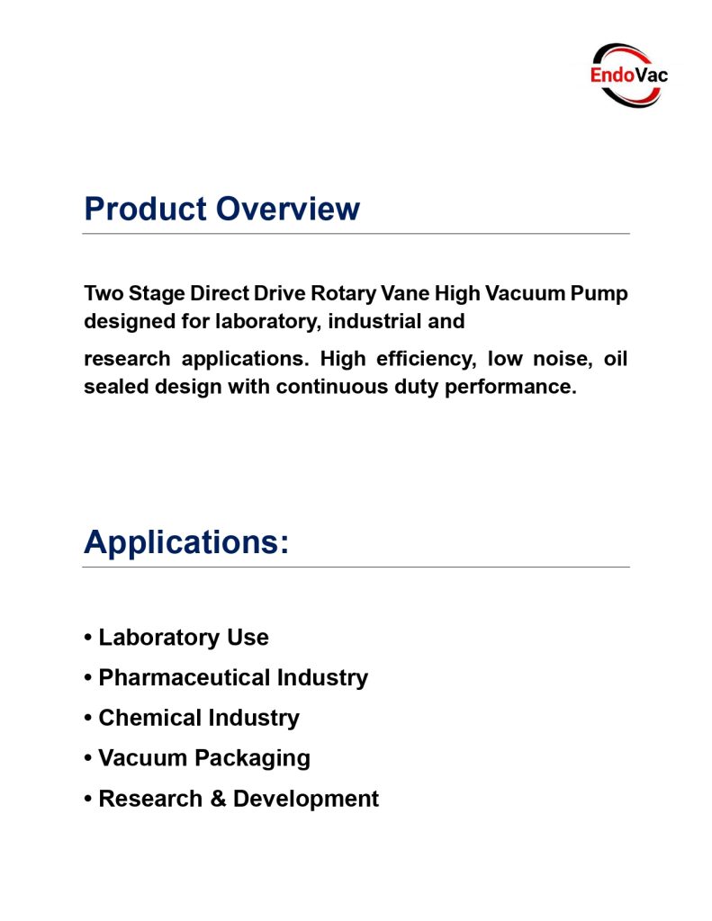 Product Overview & Applications of Endovac High vacuum Pumps